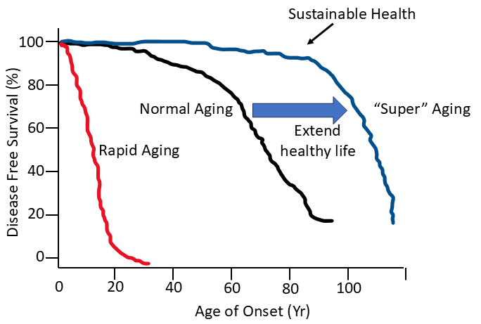 Normal agers suffer decades with chronic disease such as heart disease, cancer, osteoporosis, frailty, Alzheimer’s and Parkinsons.